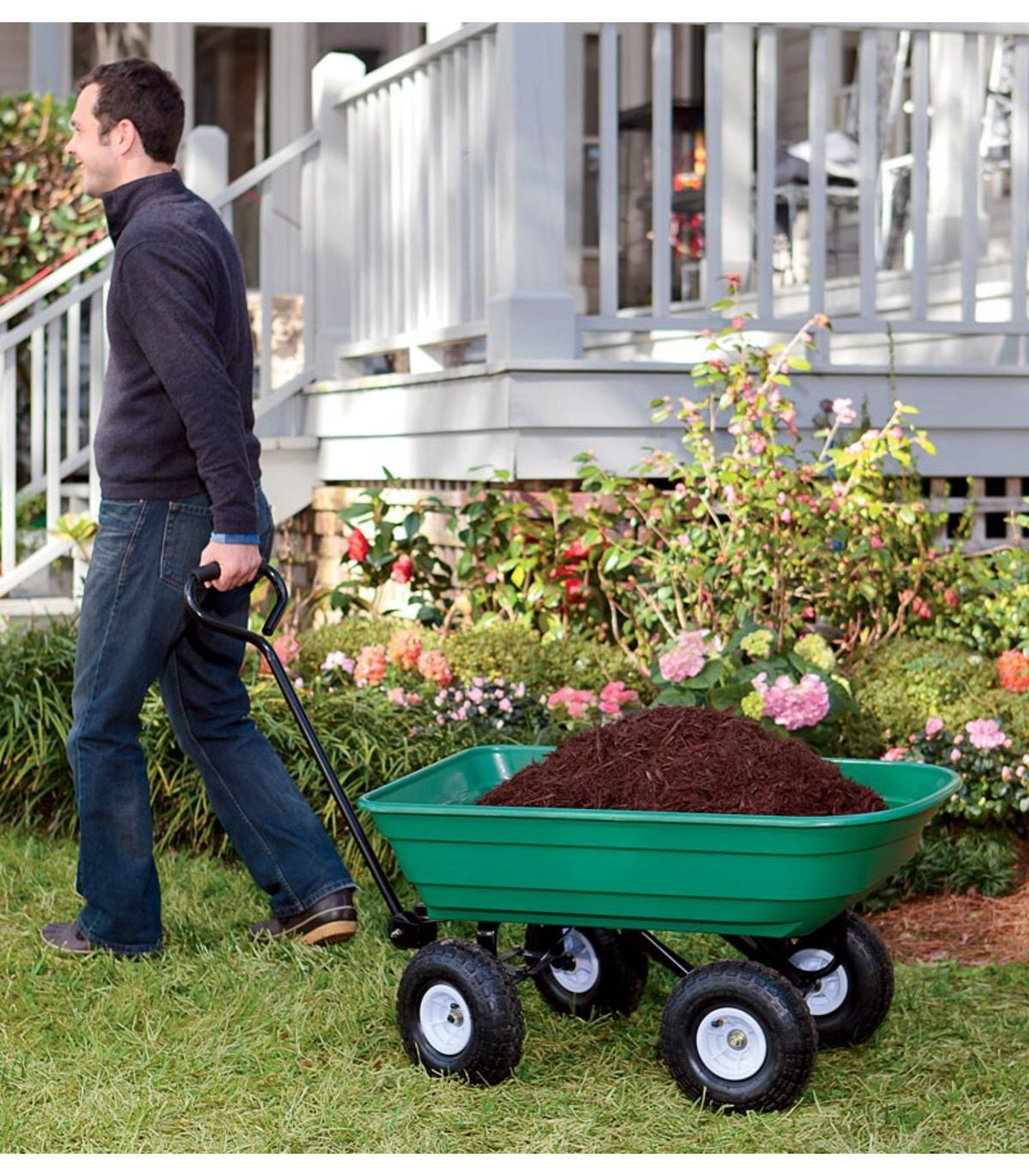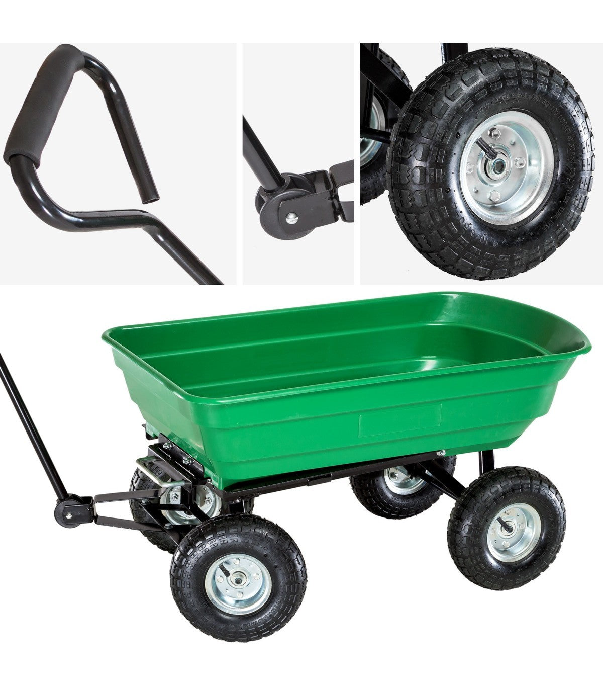 Carucior de gradina si curte, cuva basculanta, 75 l, verde, GC-018