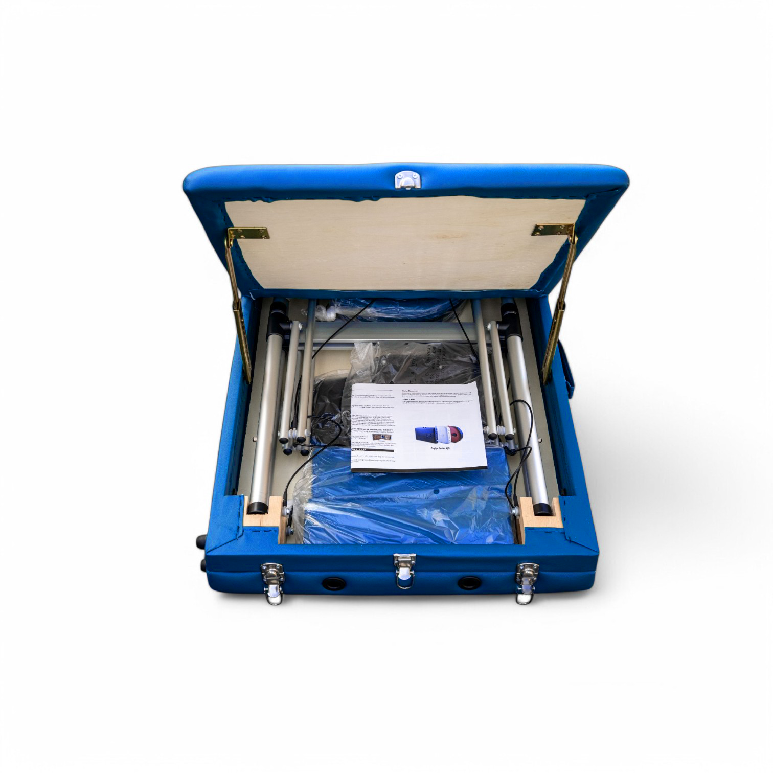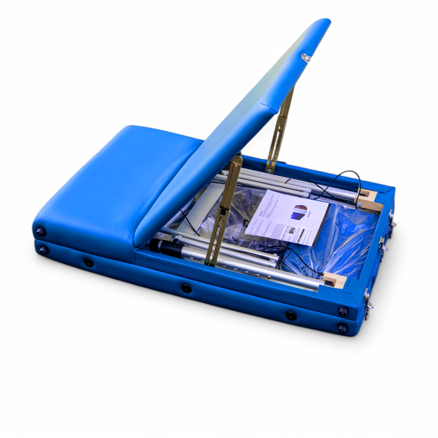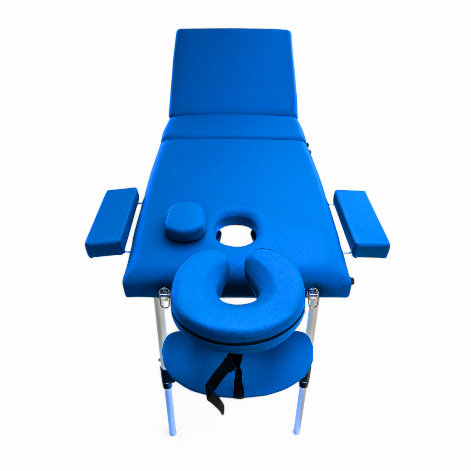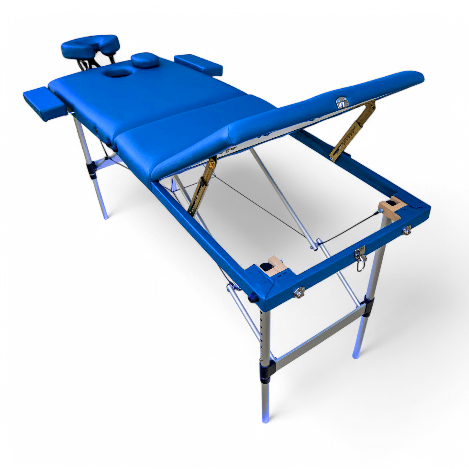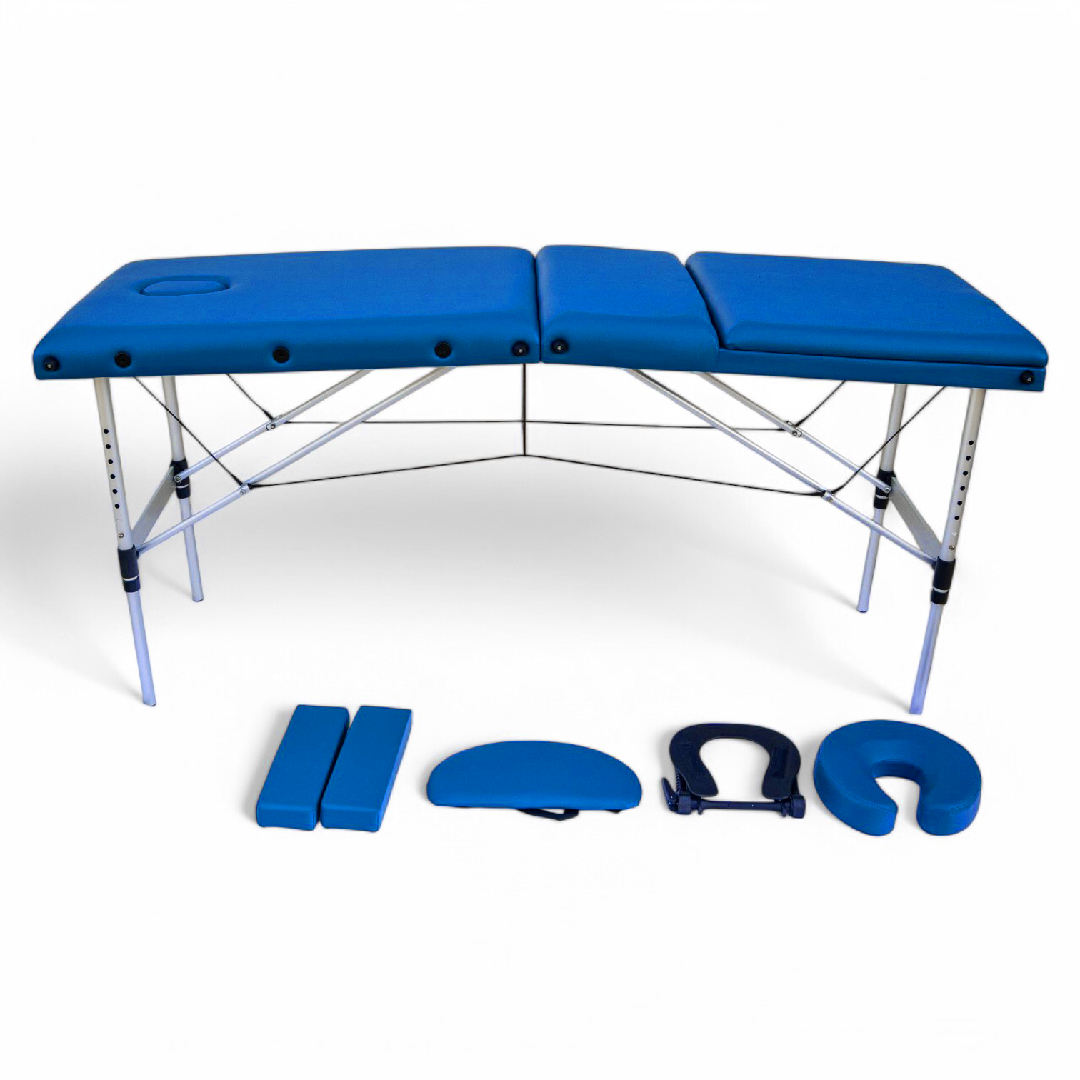 Masa de masaj portabila, cadru aluminiu, 3 sectiuni, Albastru