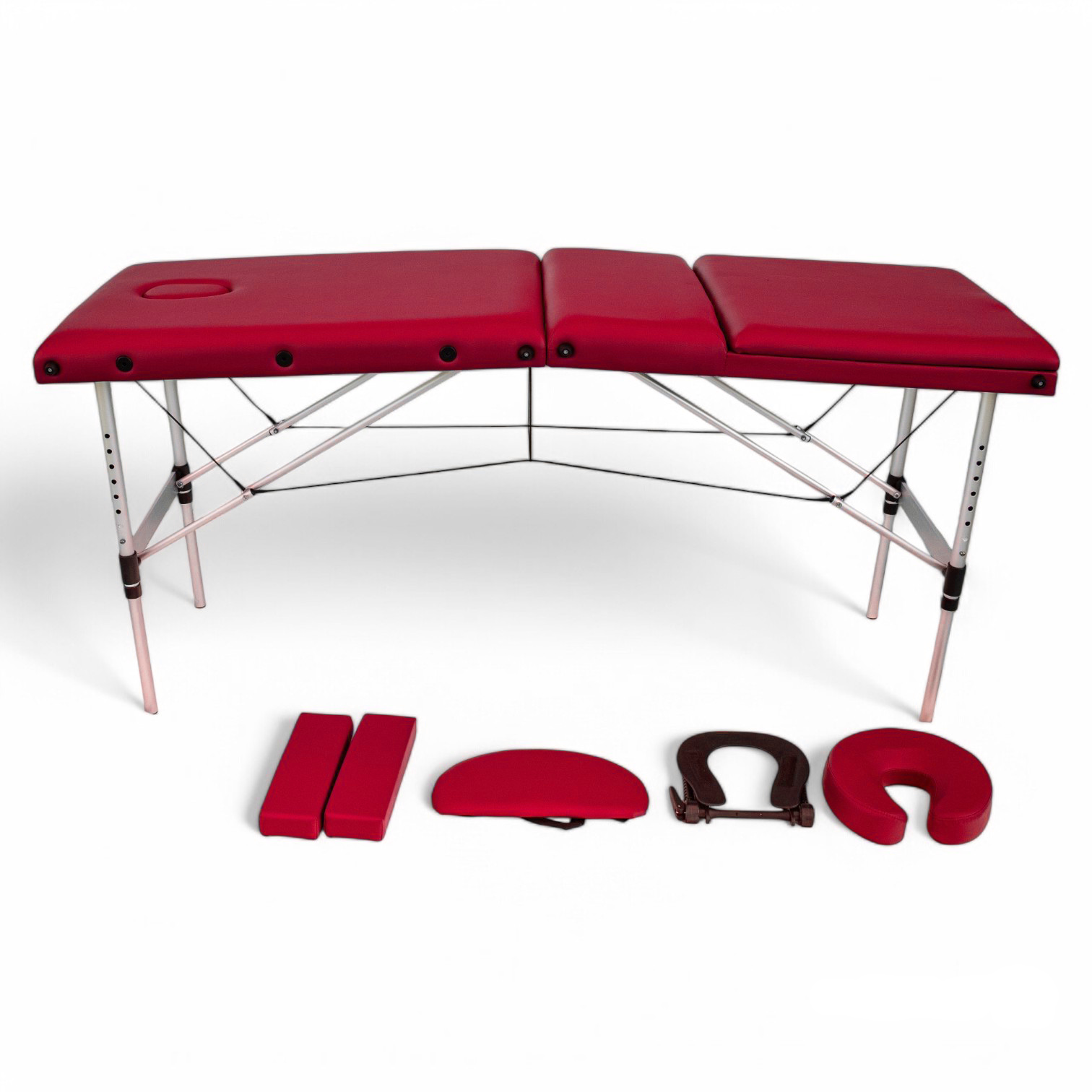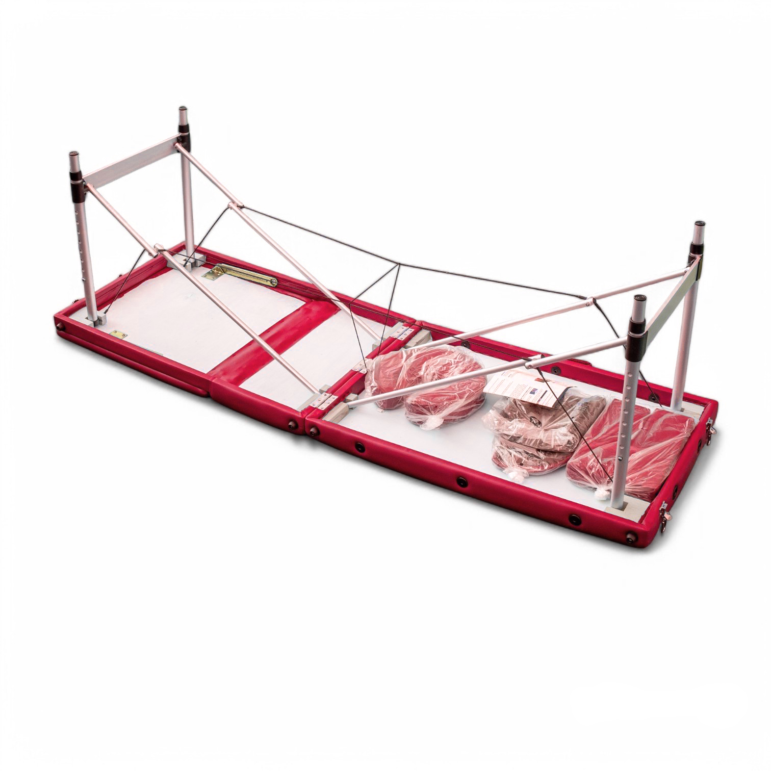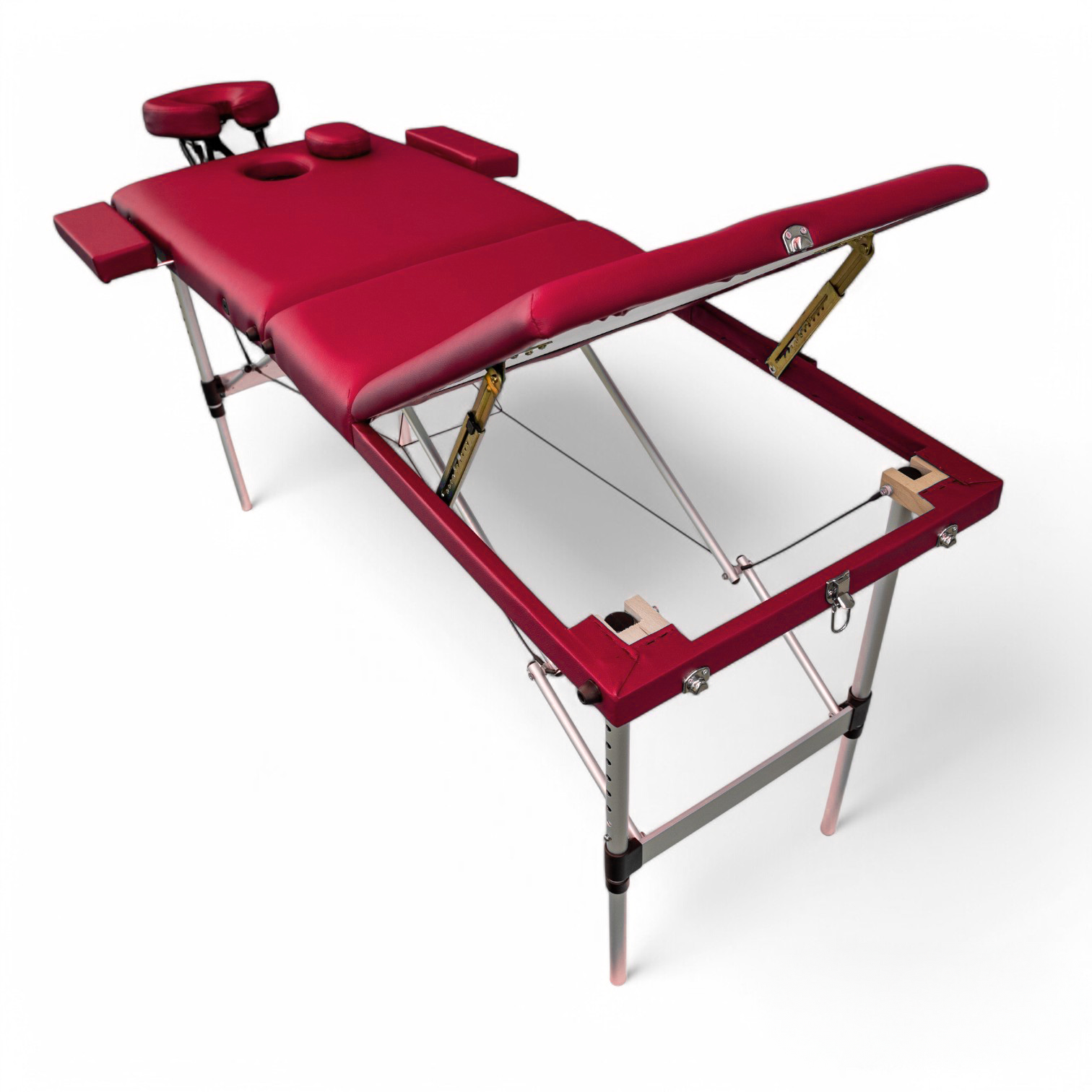 Masa de masaj portabila, cadru aluminiu, 3 sectiuni, Rosu