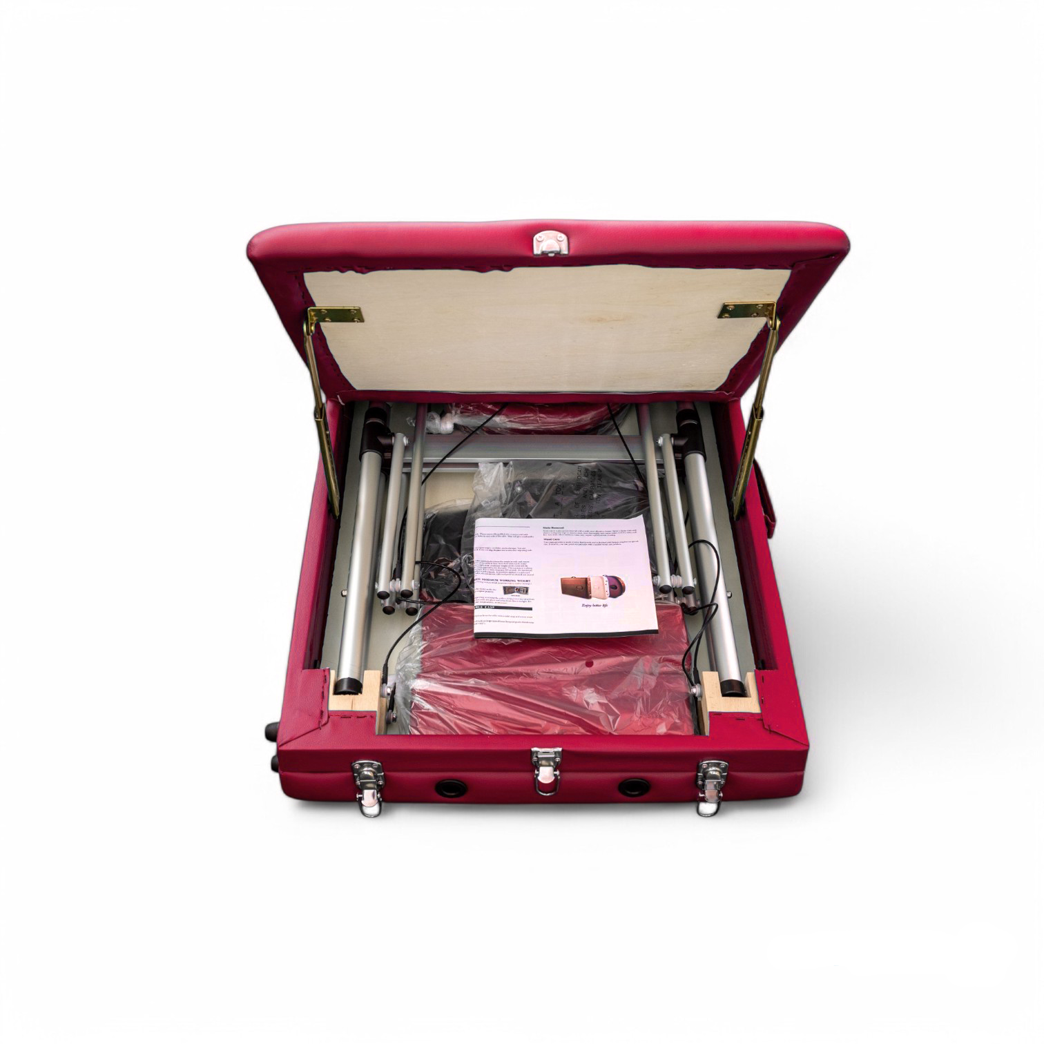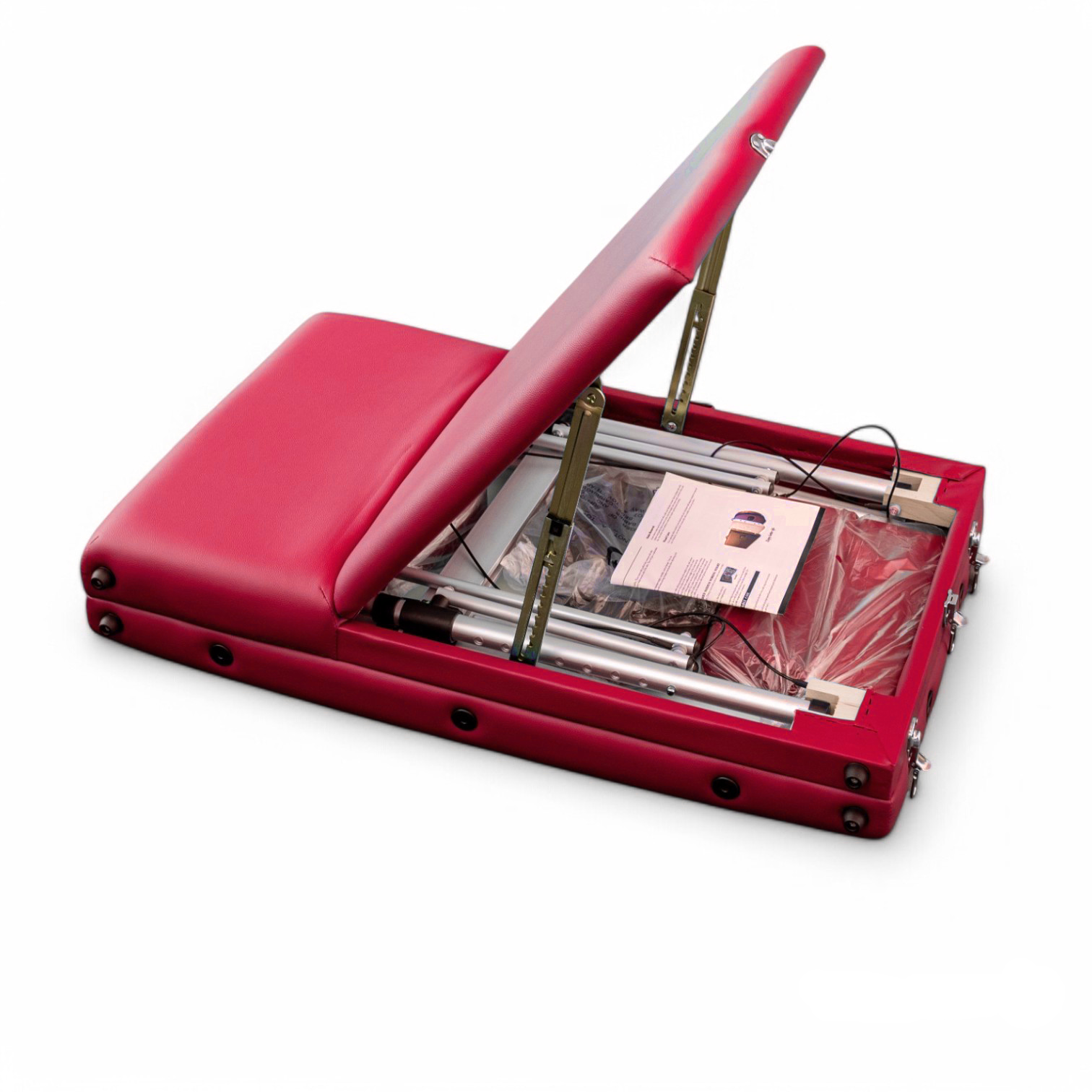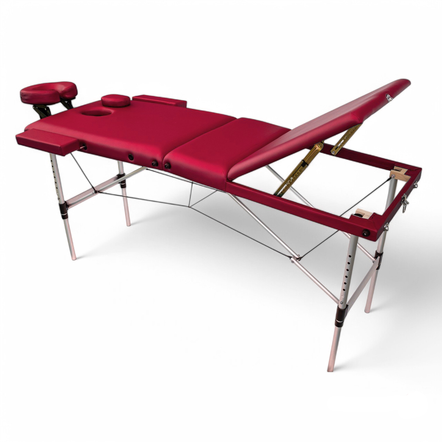 Masa de masaj portabila, cadru aluminiu, 3 sectiuni, Rosu