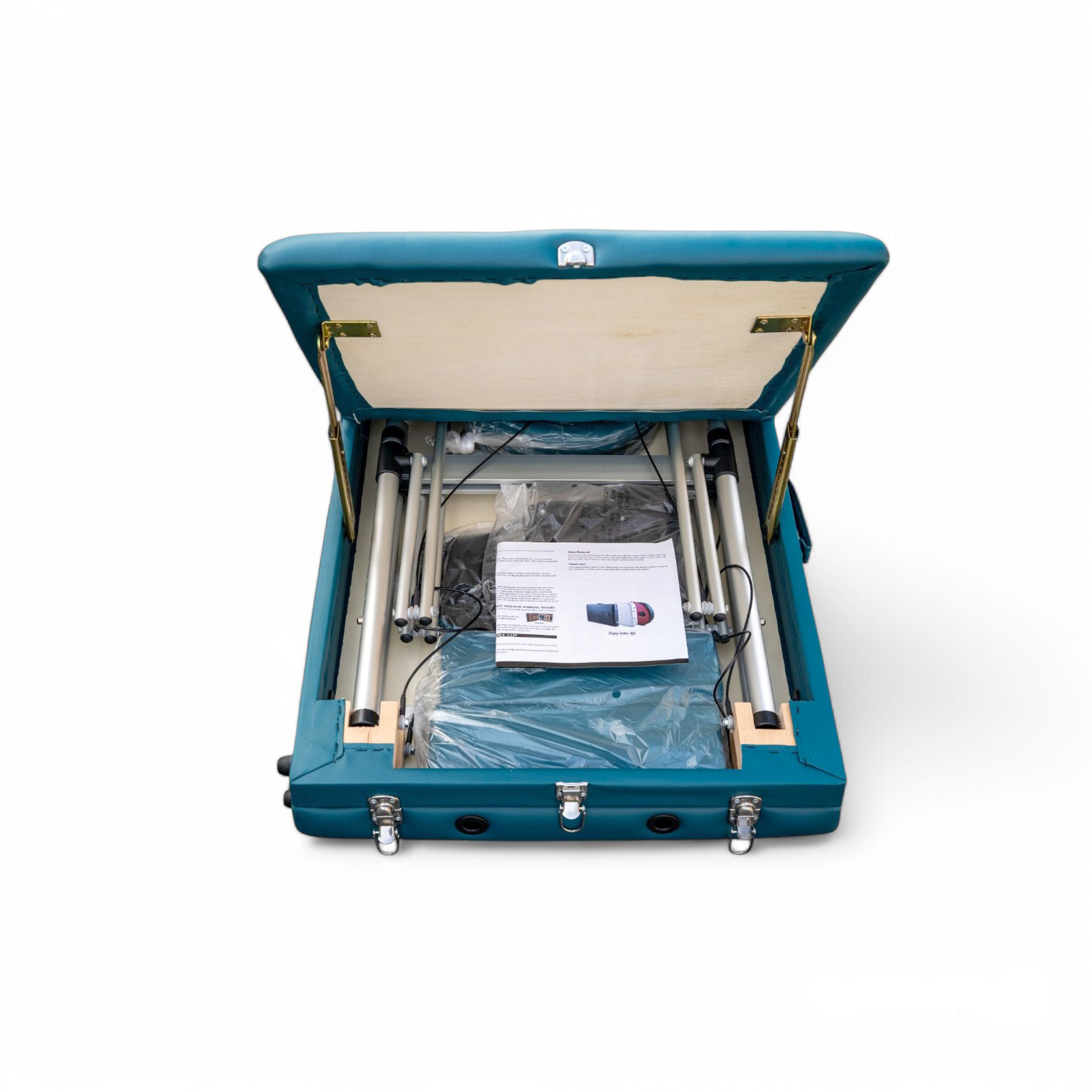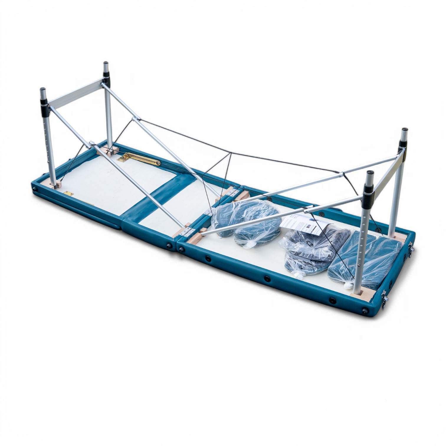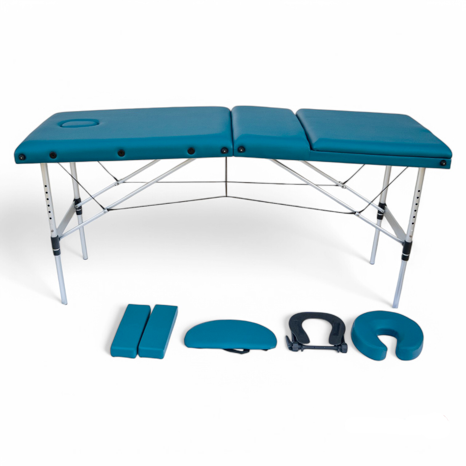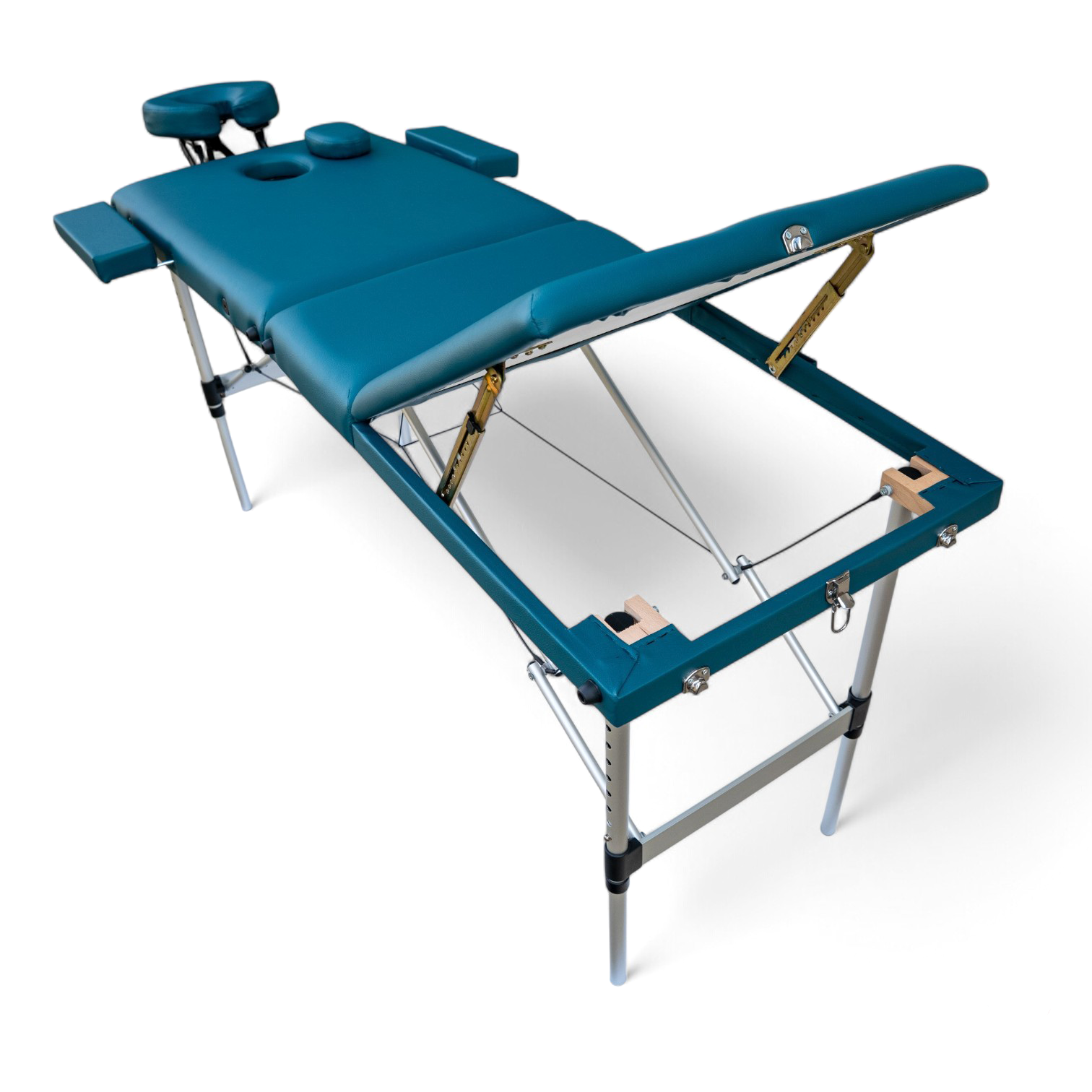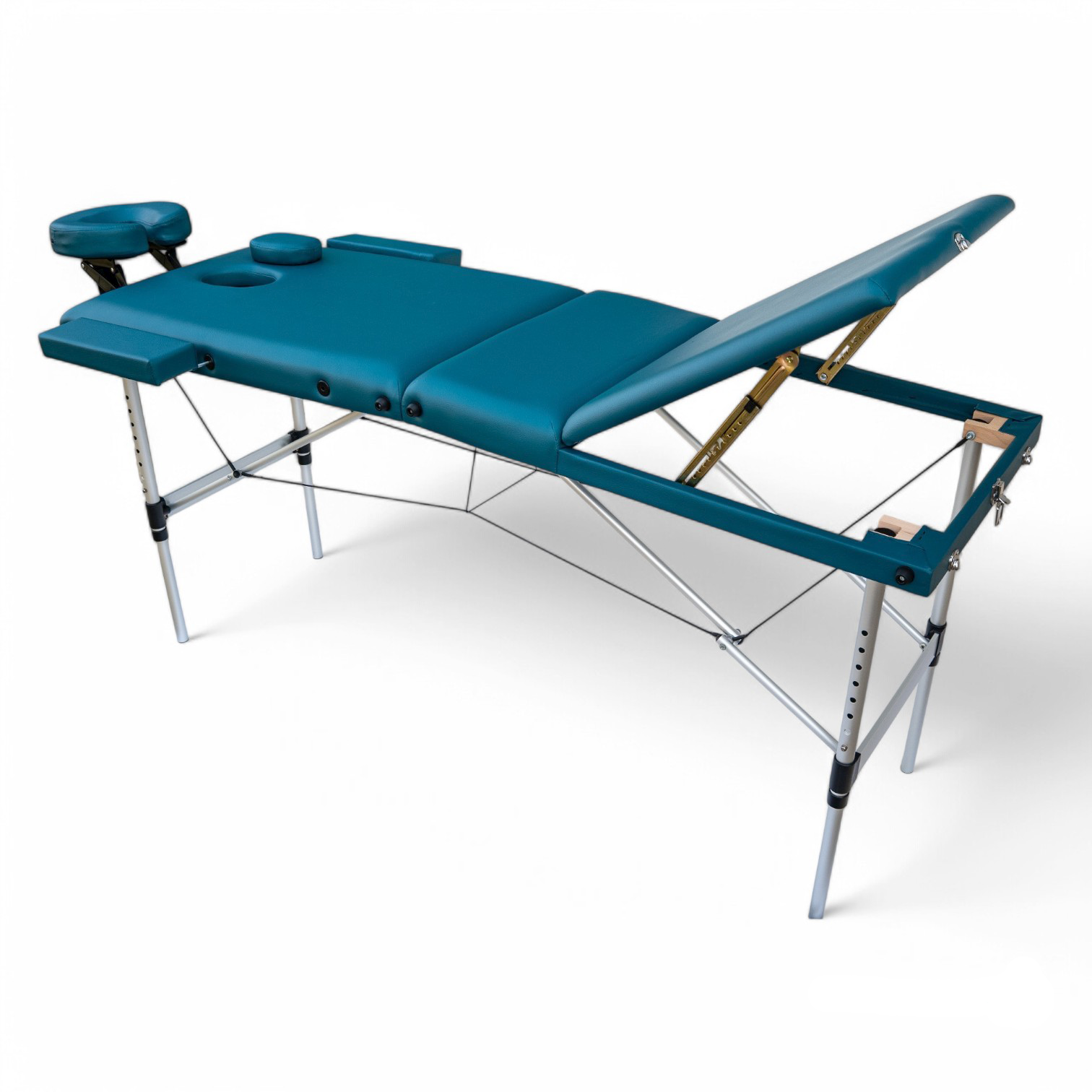 Masa de masaj portabilă, cadru aluminiu, 3 secțiuni, Verde