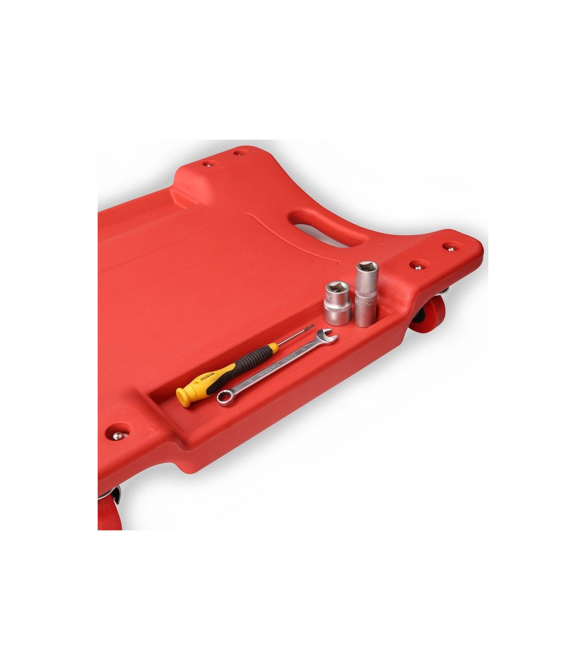 Patul mobil Tresko poate fi utilizat atat pentru service-uri si vulcanizari auto, cat si pentru uz personal. Cantarind doar 4 kg, permite schimbari rapide de directie datorita rolelor sale rulante cu rulmenti cu bile. Este foarte robust si usor, fabricat din polietilena (HDPE) de inalta densitate, dintr-o singura bucata. Se monteaza foarte repede in aproximativ 5 min.