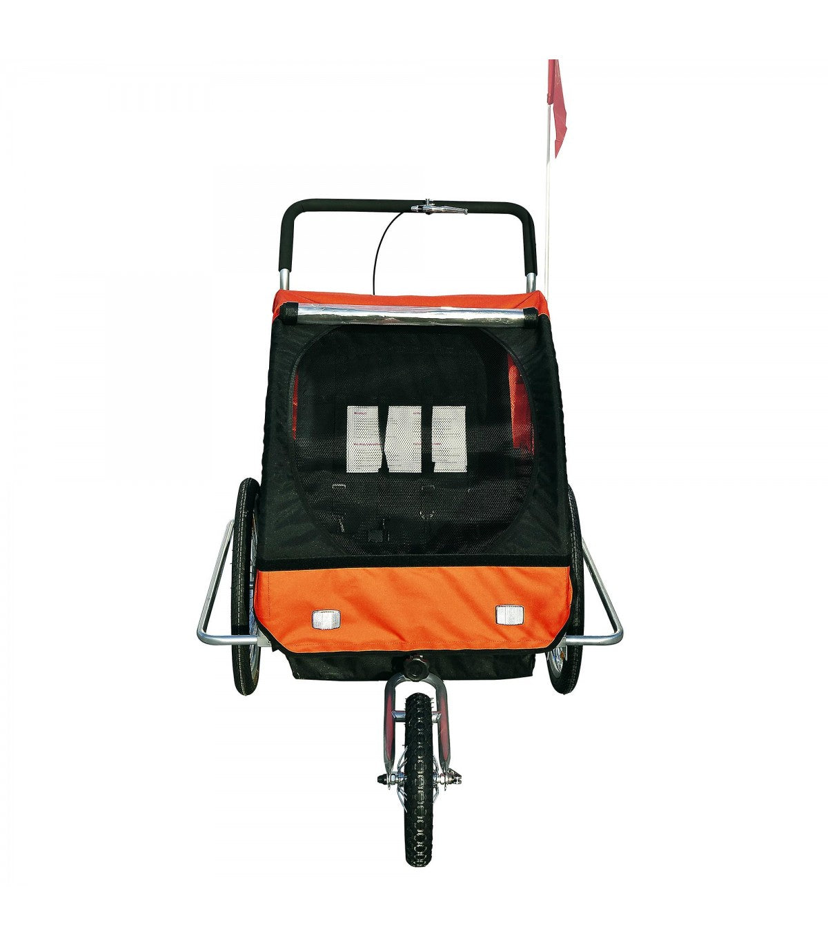 Produsul poate fi folosit atat cu functia de carucior de mana pentru transportul a 1-2 copii (se monteaza roata din fata) si se demonteaza protapul) cat si ca remorca de bicicleta (se demonteaza roata din fata si se monteaza protapul)